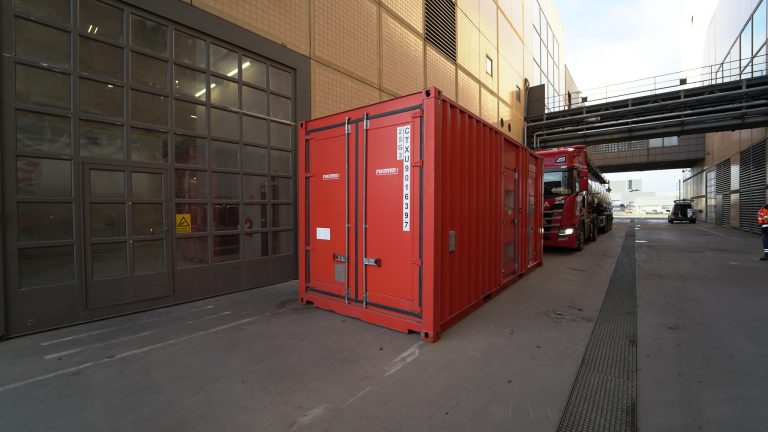 Dertil kan tankanlæg og koblingsanlæg ligeledes installeres i containeren.